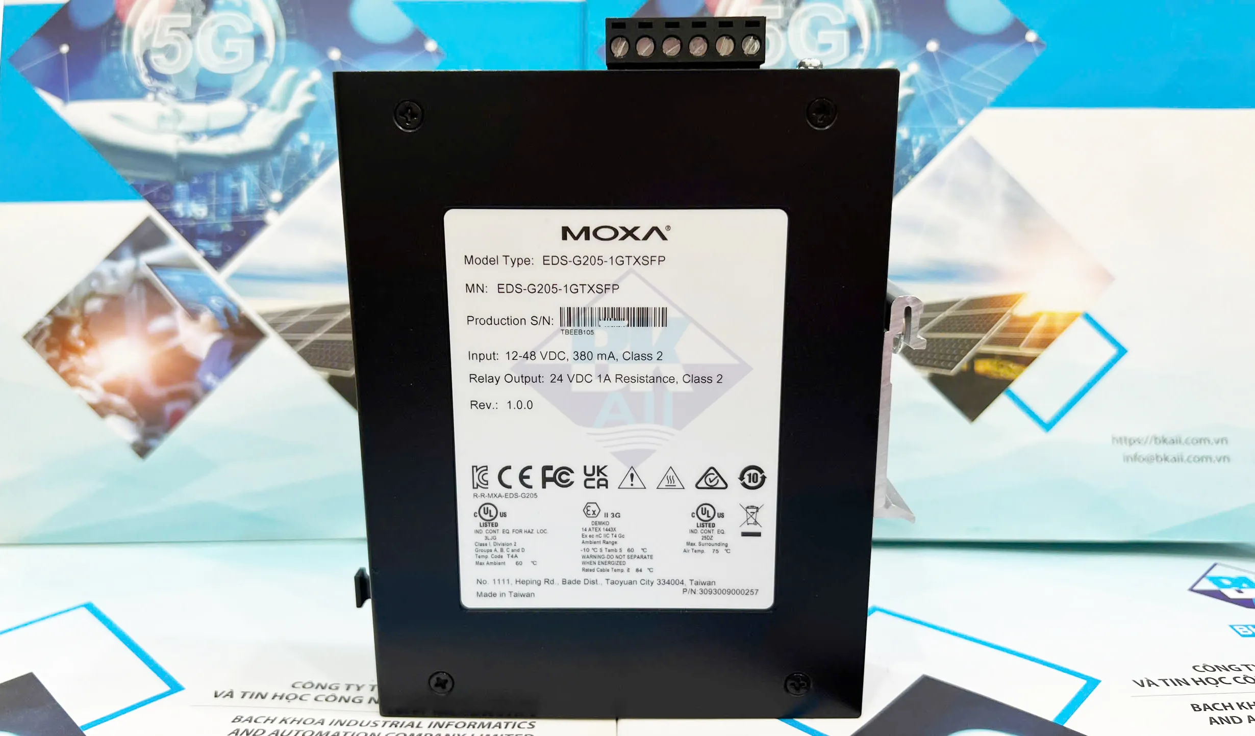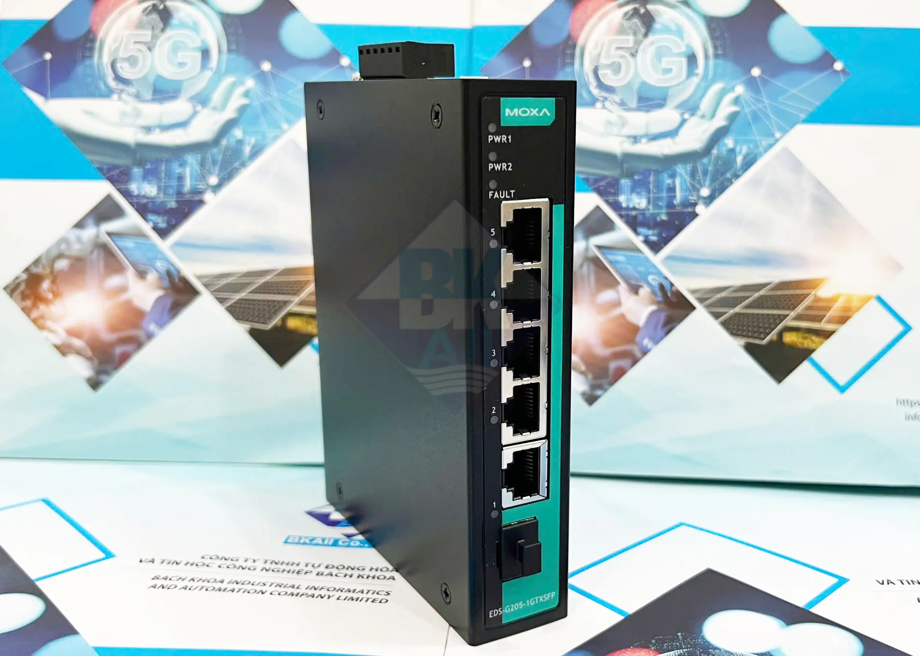 EDS-G205-1GTXSFP Switch công nghiệp 5 cổng bao gồm 4 cổng Ethernet hỗ trợ tốc độ 10/100/1000BaseT(X) và 1 cổng combo 10/100/1000BaseT(X) or 100/1000BaseSFP của hãng Moxa-Taiwan hiện đang được BKAII phân phối rộng rãi tại thị trường Việt Nam. EDS-G205-1GTXSFP được thiết kế theo tiêu chuẩn công nghiệp, nhỏ gọn, dễ dàng lấy được tín hiệu về PLC, máy tính, vi xử lý, máy tính nhúng... Sản phẩm hiện đang được sử dụng trong các bài toán M2M, IoT của các lĩnh vực: Điện lực, khí tượng thủy văn, giao thông thông minh, hệ thống kiểm soát an ninh…