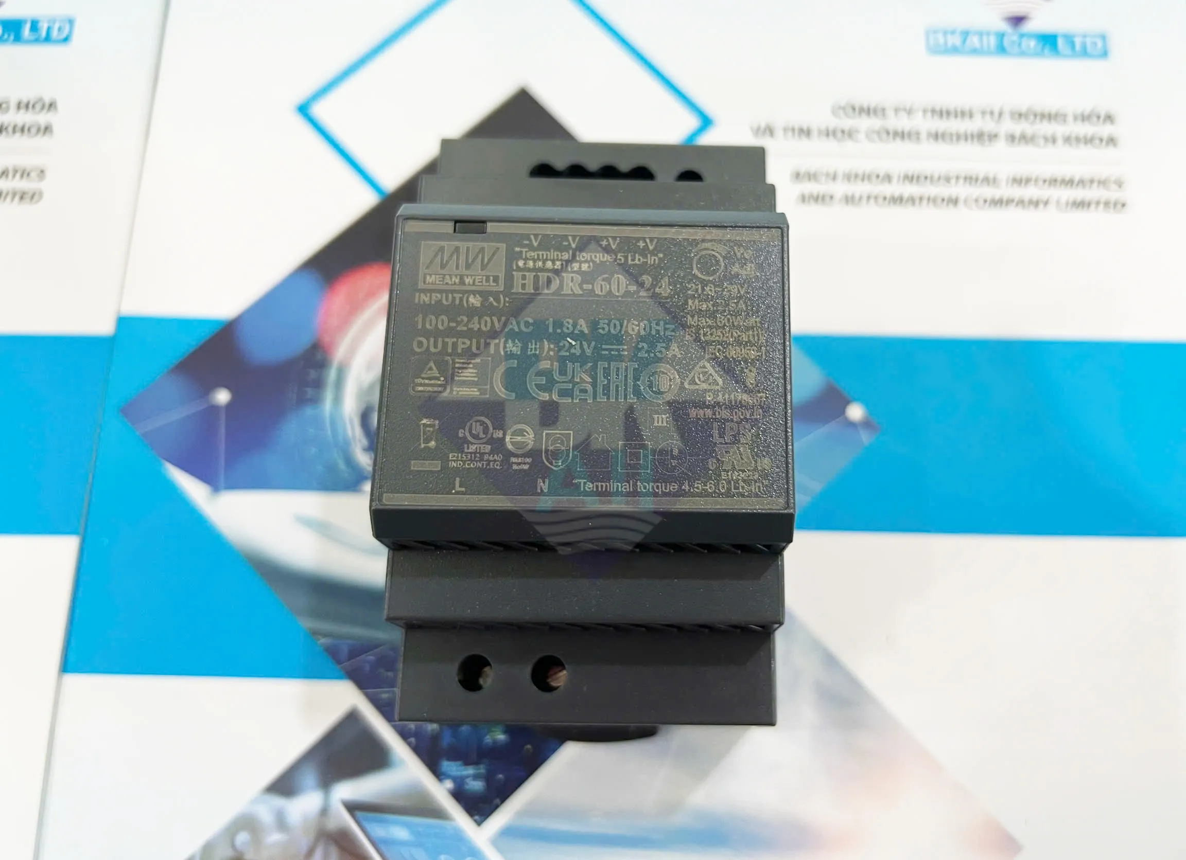 HDR-60-24 AC-DC Ultra slim DIN rail power supply; Input range 85-264VAC; Output 24VDC at 2.5A; Pass LPS của hãng Meanwellhiện đang được BKAII phân phối rộng rãi tại thị trường Việt Nam. HDR-60-24 được thiết kế theo tiêu chuẩn công nghiệp, nhỏ gọn, dễ dàng lấy được tín hiệu về PLC, máy tính, vi xử lý, máy tính nhúng. Sản phẩm hiện đang được sử dụng trong các bài toán M2M, IoT của các lĩnh vực: Tự động hóa, công nghiệp, điện lực, khí tượng thủy văn, giao thông thông minh, hệ thống kiểm soát an ninh,…
