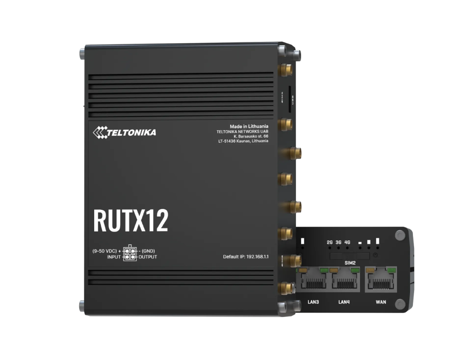 Antennas 4 x SMA for LTE, 2 x RP-SMA for WiFi, 1 x RP-SMA for Bluetooth,1 x SMA for GNNS