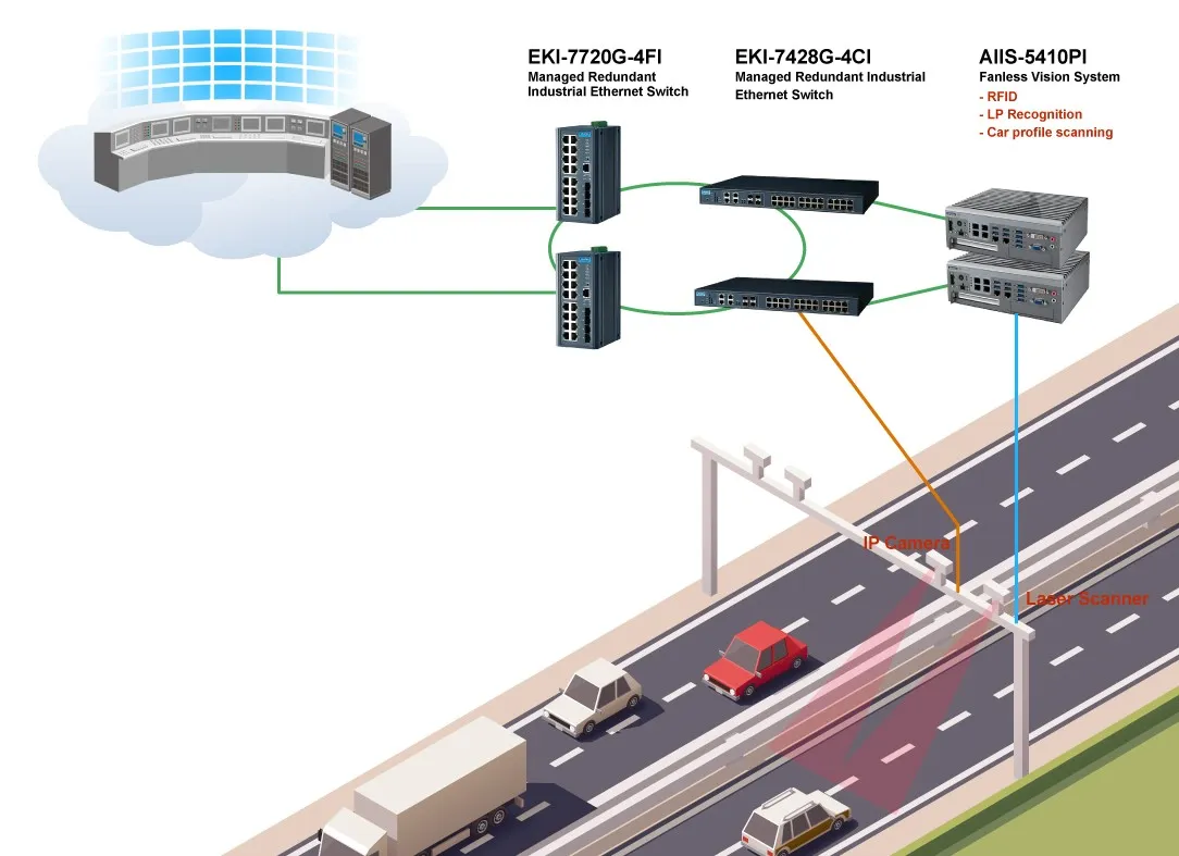Hạ tầng thu phí điện tử (ETC) ổn định — Advantech EKI & Backbone Switch