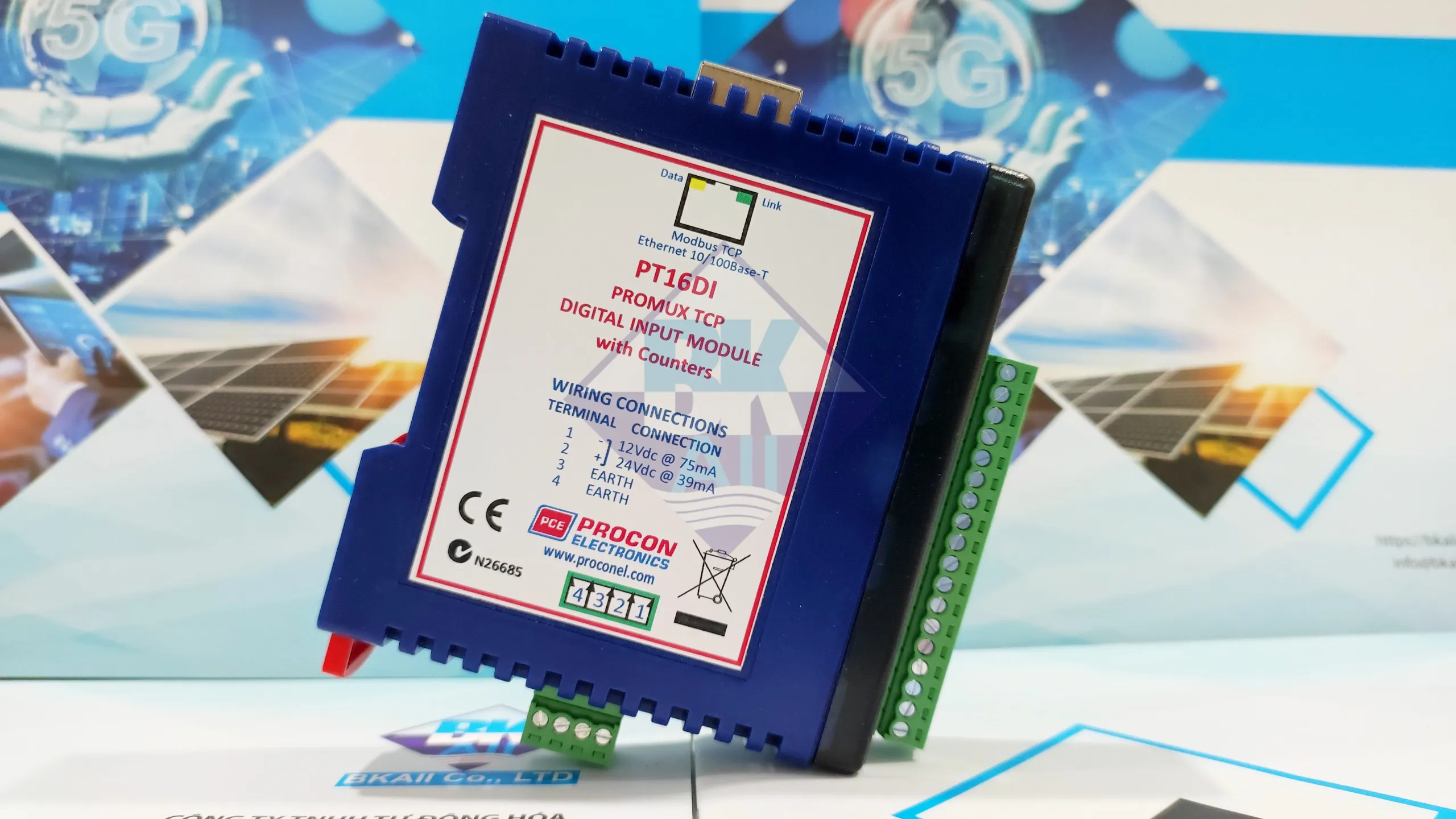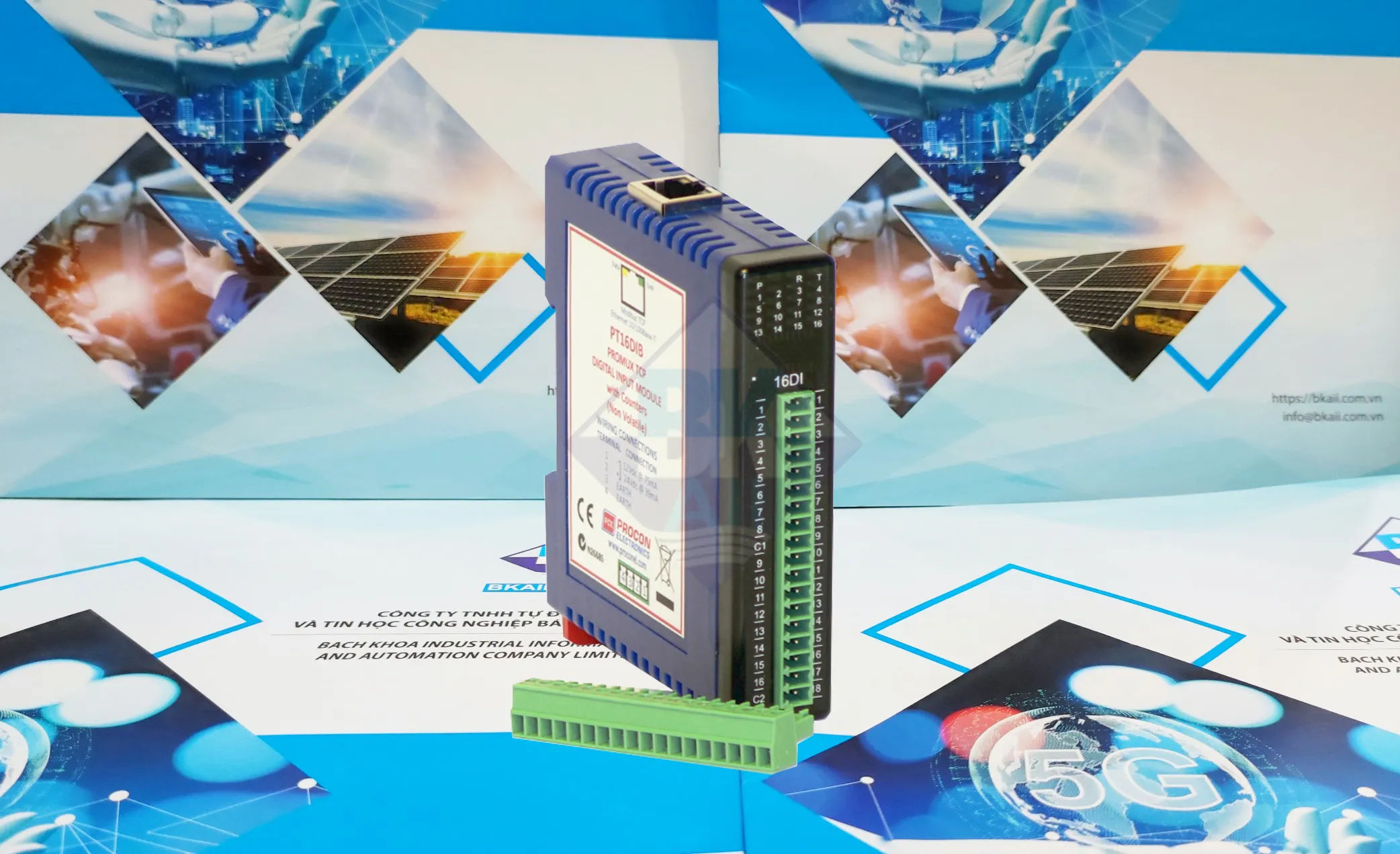 PT16DI và PT16DIB cung cấp 16 ngõ vào số (digital inputs) cách ly thành 2 nhóm 8 kênh, hỗ trợ bộ đếm 32-bit, giao tiếp Modbus TCP và web server để cấu hình, đây là sản phẩm thông dụng của hãng Procon - Úc hiện đang được BKAII phân phối rộng rãi tại thị trường Việt Nam. Về phần cứng và chức năng cơ bản hai model tương đồng — tuy nhiên khác biệt chính mang ý nghĩa ứng dụng nằm ở khả năng lưu giá trị counters khi mất nguồn của PT16DIB.