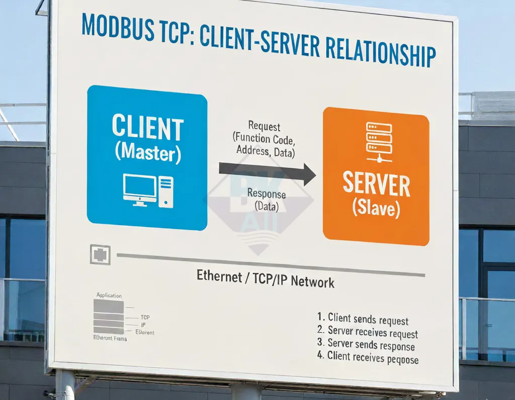 Trong Modbus TCP, kiến trúc truyền thông được thiết kế dựa trên mô hình Client – Server, thay thế hoàn toàn mô hình Master – Slave trong Modbus RTU truyền thống. Hôm nay BKAII sẽ cùng các bạn tìm hiểu, lãm rõ cơ chế này giúp các bạn có thể thiết kế hệ thống ổn định và xử lý lỗi nhanh chóng.