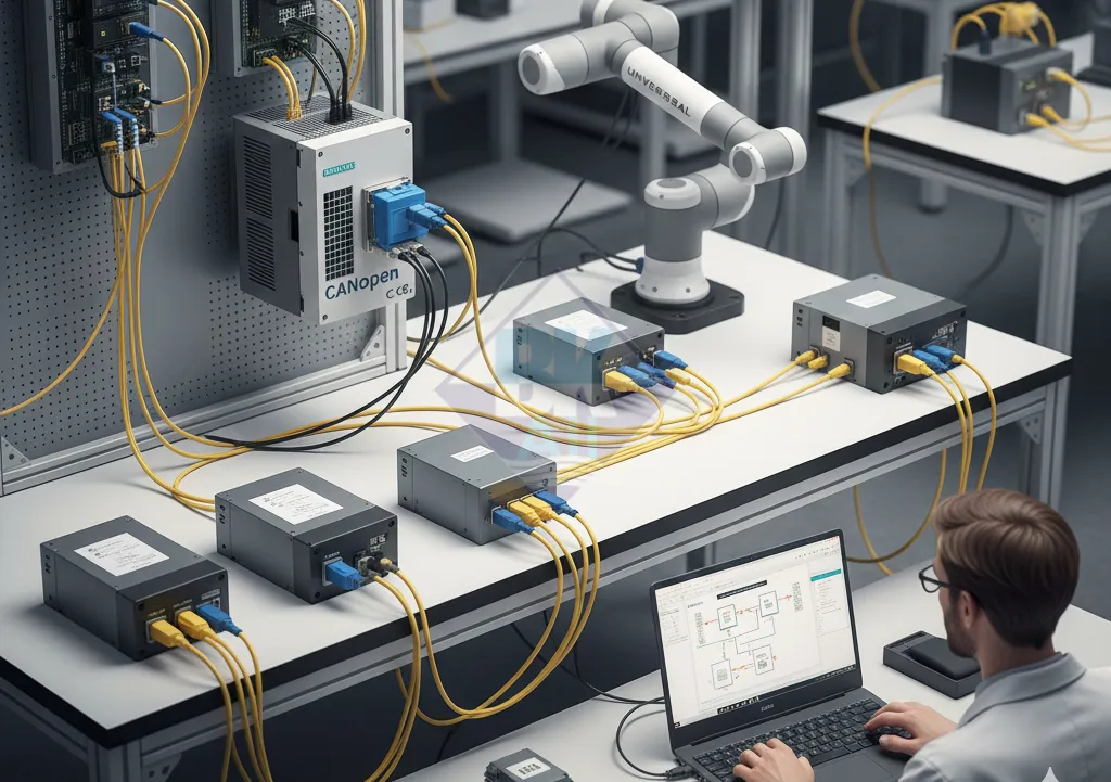 A: CANopen thường được dùng làm bus nội bộ cho servo, I/O và cảm biến trong robot.