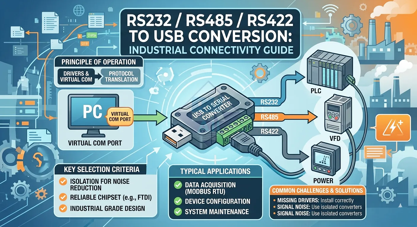 Bộ chuyển đổi RS232/RS485/RS422 sang USB là thiết bị quan trọng giúp kết nối giữa máy tính và thiết bị công nghiệp. Việc lựa chọn đúng thiết bị sẽ giúp hệ thống ổn định và giảm lỗi truyền thông.