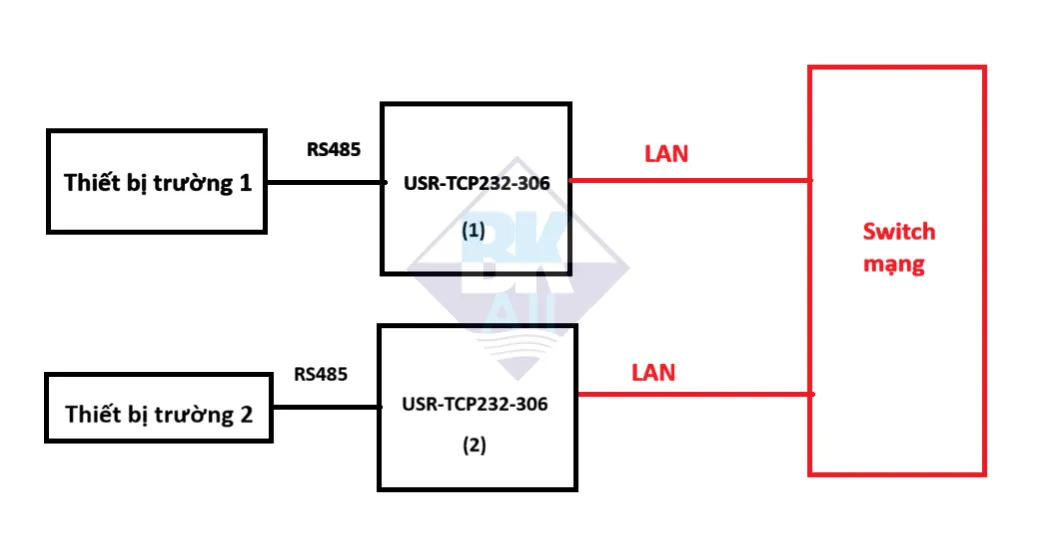 Trong nhiều hệ thống tự động hóa, nhu cầu truyền dữ liệu giữa hai thiết bị trường ở khoảng cách xa ngày càng phổ biến. Việc kéo cáp RS485 trực tiếp thường gặp hạn chế về khoảng cách, nhiễu và chi phí thi công. Để giải quyết bài toán này, hôm nay BKAII sẽ giới thiệu tới các bạn giải pháp sử dụng USR-TCP232-306 hãng USR làm bộ chuyển đổi RS485 ↔ Ethernet cho phép truyền dữ liệu ổn định qua hạ tầng mạng LAN sẵn có, đảm bảo độ tin cậy cao, dễ mở rộng và bảo trì.