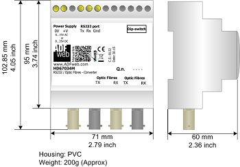 4xST Fibres optic; 1xRS232 |