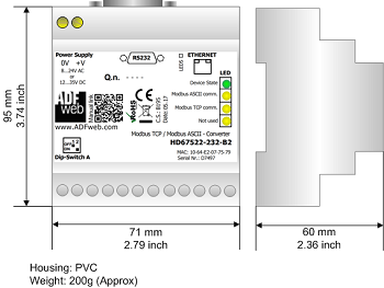 HD67522-232-B2 Modbus TCP / Modbus ASCII - Converter ( Housing type: B, Terminal Blocks Connectors, Modbus ASCII port: RS232 ) của hãng ADFweb hiện đang được BKAII phân phối tại thị trường Việt Nam. HD67522-232-B2 được thiết kế theo tiêu chuẩn công nghiệp, nhỏ gọn, dễ dàng lấy được tín hiệu về PLC, máy tính, vi xử lý, máy tính nhúng. Sản phẩm hiện đang được sử dụng trong các bài toán M2M, IoT của các lĩnh vực: Điện lực, khí tượng thủy văn, giao thông thông minh, hệ thống kiểm soát an ninh....
