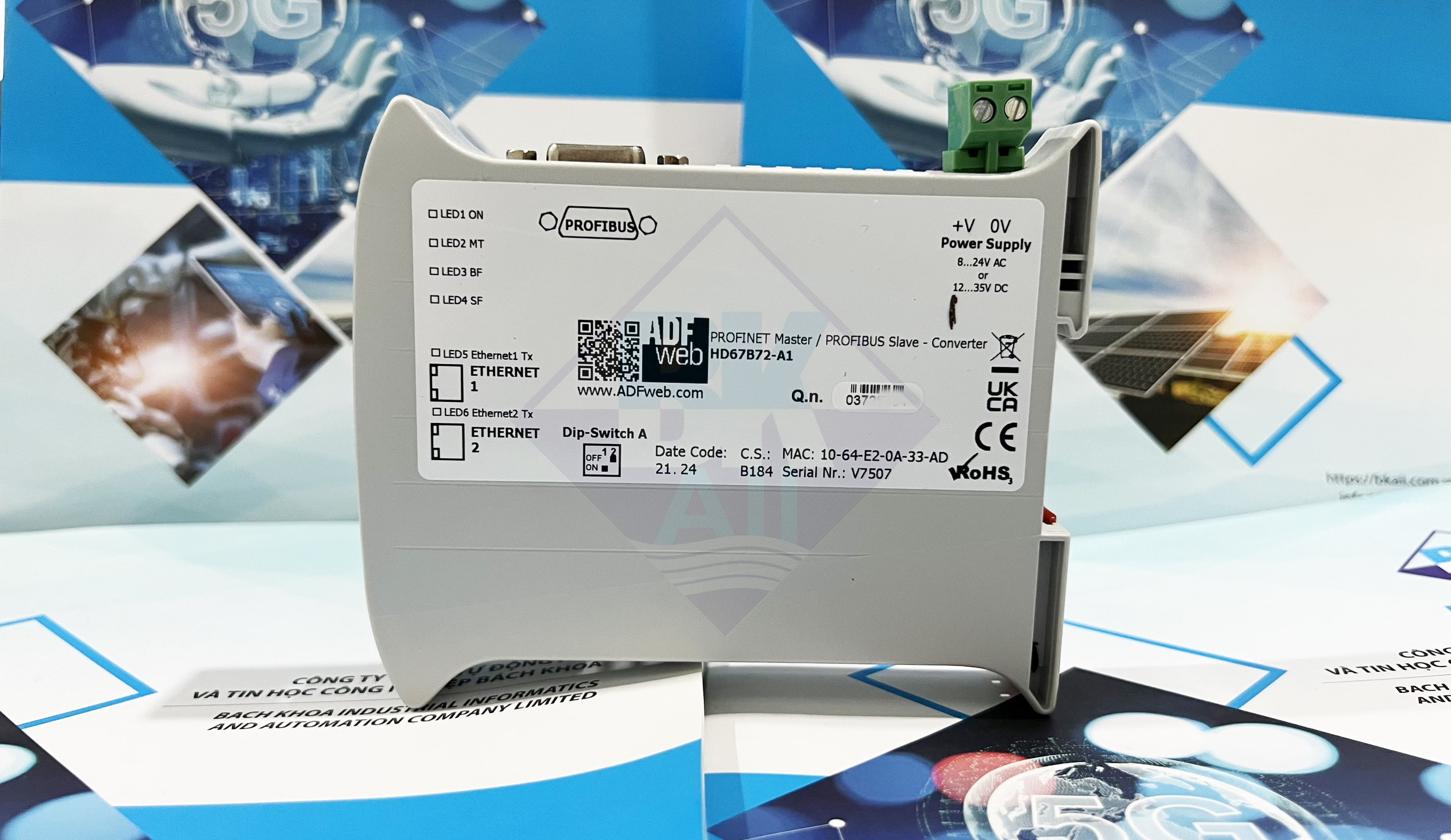 HD67B72-A1 PROFINET Master/PROFIBUS Slave-Converter (Ethernet Switch Inside for enter/exit connection, Housing type: A, Terminal Blocks Connectors) của hãng ADFweb hiện đang được BKAII phân phối tại thị trường Việt Nam. HD67B72-A1 được thiết kế theo tiêu chuẩn công nghiệp, nhỏ gọn, dễ dàng lấy được tín hiệu về PLC, máy tính, vi xử lý, máy tính nhúng. Sản phẩm hiện đang được sử dụng trong các bài toán M2M, IoT của các lĩnh vực: Điện lực, khí tượng thủy văn, giao thông thông minh, hệ thống kiểm soát an ninh....